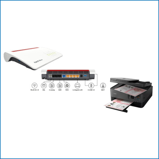 Die FRITZ!Box ist auch ein Druckerserver. Schliessen Sie den Drucker via USB direkt an die FRITZ!Box und verwalten Sie den Drucker zentral. Sie können nun von allen Geräten aus Ihrem Heimnetz auf diesen Drucker zugreifen und drucken.