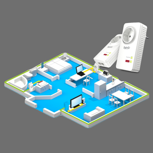 In manchen Situationen ist die Verlegung von Netzwerkkabeln schwierig und eine WLAN-Verbindung nicht optimal. Dies kann etwa der Fall sein, wenn das Netzwerk mehrere Etagen umfasst oder zahlreiche Hindernisse die kabellose Datenübertragung beeinträchtigen. Mit Powerline-Technologie werden die Daten von Strom-Steckdose zu Strom-Steckdose übertragen, wodurch auch in entfernten Bereichen hohe Datenraten erreicht werden, ohne dass zusätzliche Kabel erforderlich sind. Natürlich lassen sich LAN, WLAN und Powerline auch clever zu einem Heimnetzwerk kombinieren.
