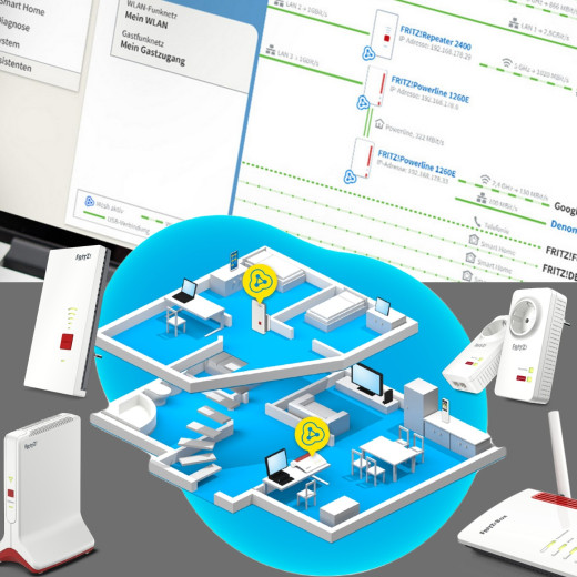Dank der Mesh-Funktion unserer Repeater wird die Verbindung, Erweiterung, Optimierung und Steuerung Ihres WLAN-Netzwerks automatisch von der Fritz!Box übernommen. Mit der intuitiven Bedienoberfläche, die Sie bequem über den Webbrowser aufrufen können, wird die Verwaltung Ihres Netzwerks zum Kinderspiel.