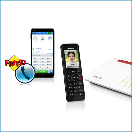 Eine sehr praktische Funktion der FRITZ!Box ist die eingebaute Telefonzentrale. Mit den DECT Funktelefonen von AVM, die Sie direkt mit der FRITZ!Box verbinden können, haben Sie ein zentrales Telefonbuch, telefonieren zum günstigen Festnetztarif und können Ihr Smartphone, mit der «FRITZ!App Fon» auch als Festnetzgerät nutzen!